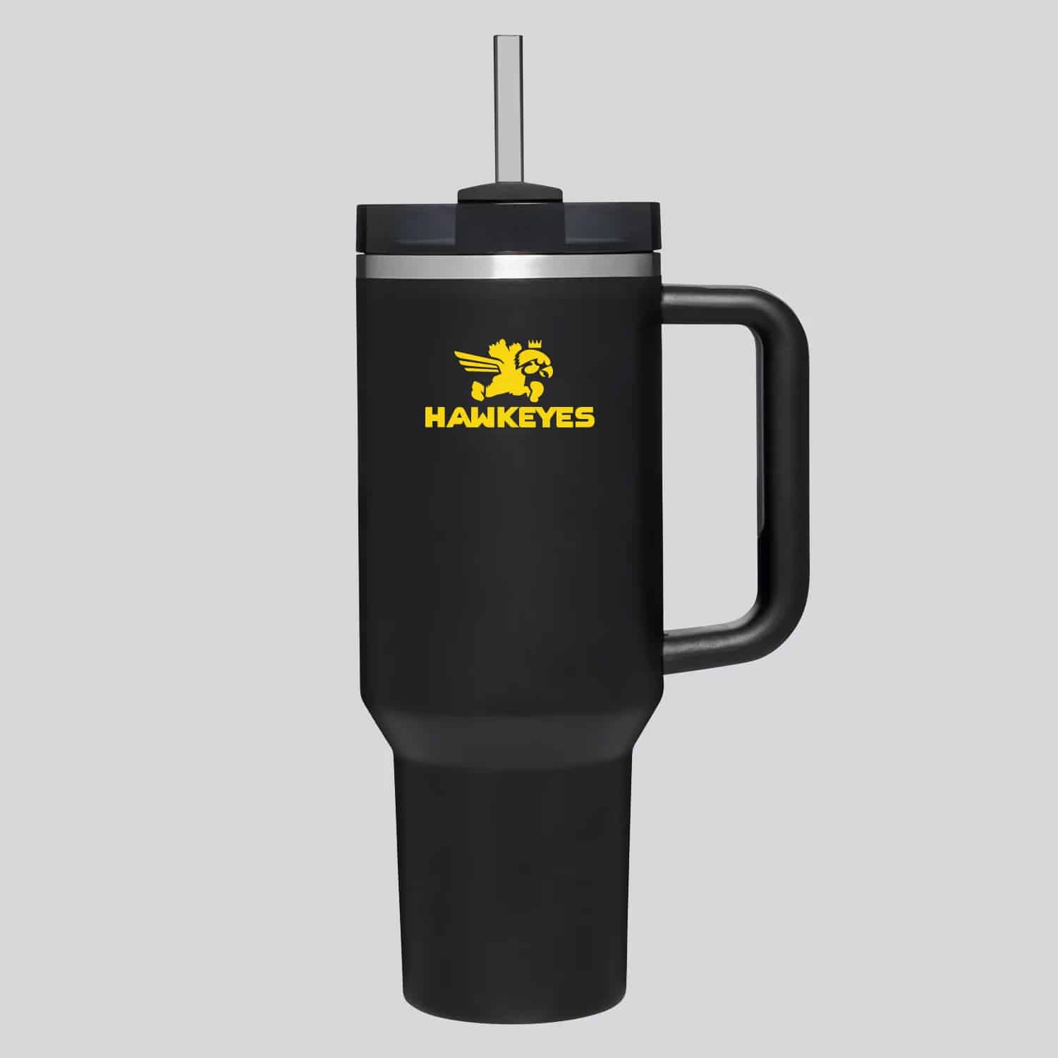 Stay hydrated in style with this 40oz insulated tumbler with handle and straw. Featuring black & gold color-inspired design, this tumbler is perfect for fans who want to show spirit without sacrificing performance. Double-wall insulation keeps drinks hot or cold. Ergonomic handle, secure lid, and included straw ensure spill-resistant sipping. Ideal for tailgates, watch parties, commuting, and daily use.