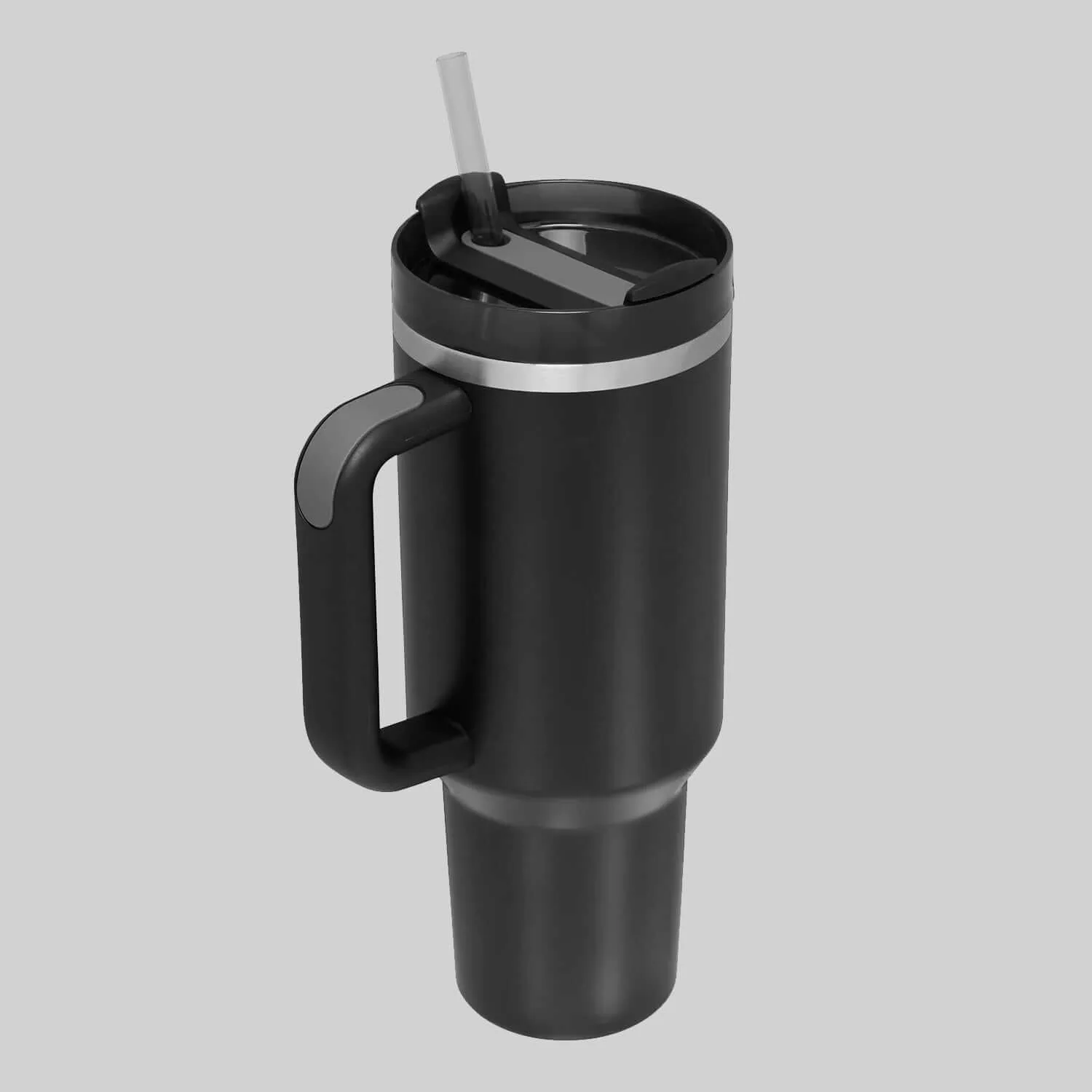This 40oz insulated tumbler features a bold red & black color-inspired design. Double-wall insulation keeps beverages hot or cold for hours. Designed with a comfortable handle, secure lid, and reusable straw, making it ideal for commuting, workouts, tailgates, and everyday hydration.